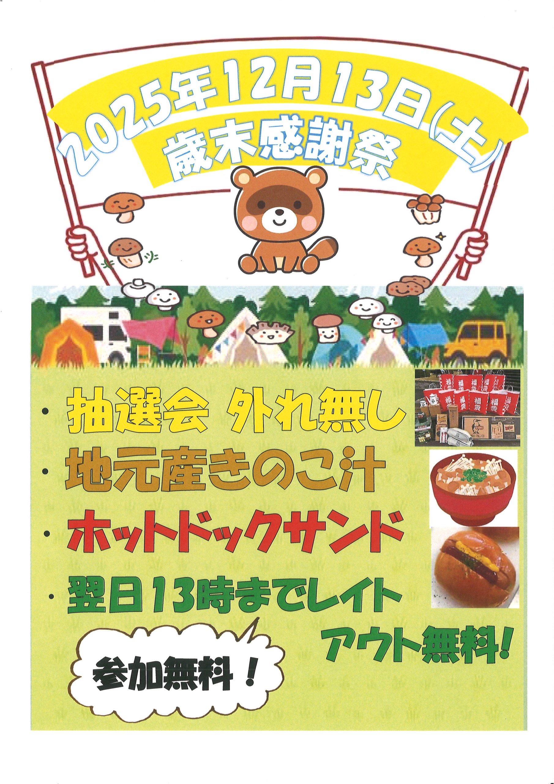 2.地元産きのこ汁振る舞い 13時00分~16時00分頃まで